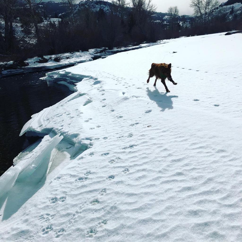 january. earlier this month, i packed my bags, borrowed a truck, and grabbed my red dog for a long weekend. i drove to the river, 4 hours away and 25 miles off an idaho backwoods highway. i had done my research, but no amount of research will tell you how far away from your destination you will get high centered by powder, stopped by a fallen tree, or mired in muck up to your axles. i had to plan for the worst. i packed a shovel and my courage, put on my big girl panties and off i went.
