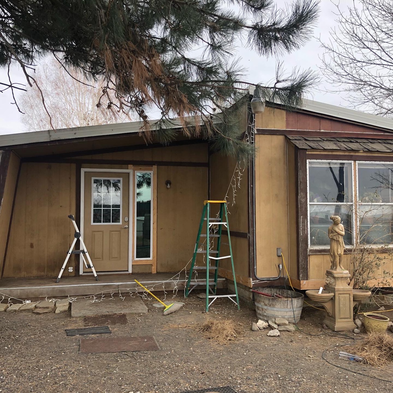i got to visit my sister in washington again in october. i carved out some time to finish a project that we started in april- and we were all pretty excited by the results. see below/after photos below. the purple door was the culmination of a fabulous effort and a total home makeover of her sweet ranch house on her little 3-acre farm. also pictured is a fabulous huckleberry pie we devoured from the 57 Store in priest river, idaho.
