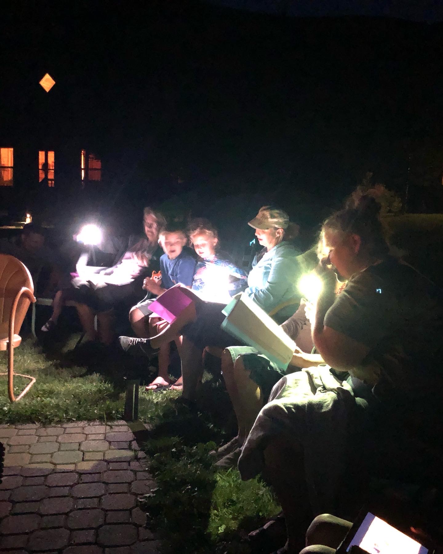 the night ended with a starry skies, a campfire and a chorus of show tunes at the greyhouse bed and breakfast on highway 28.  at midnight, i asked mom if we could go home, finally giving in to the heat and exhaustion of the day.