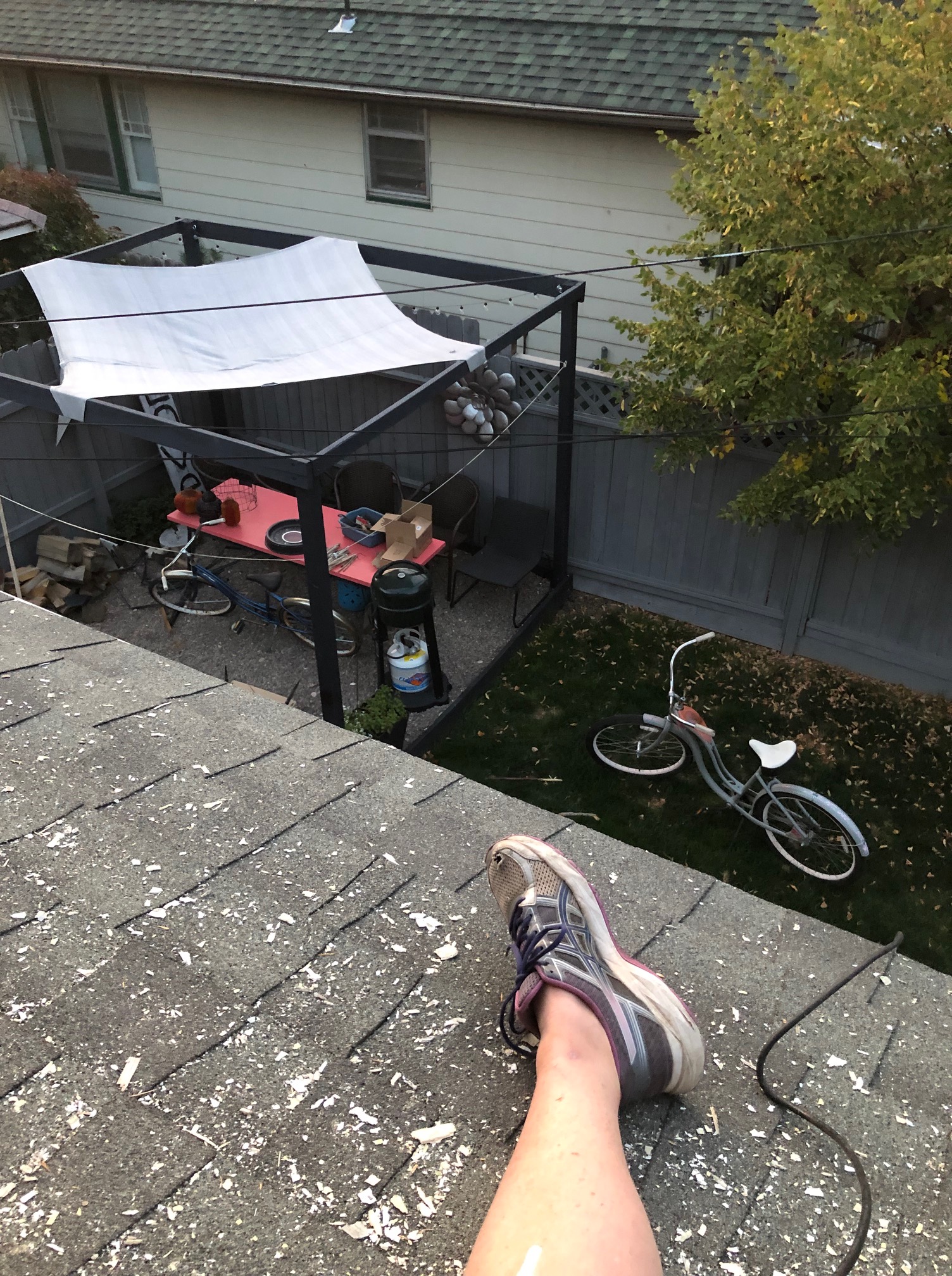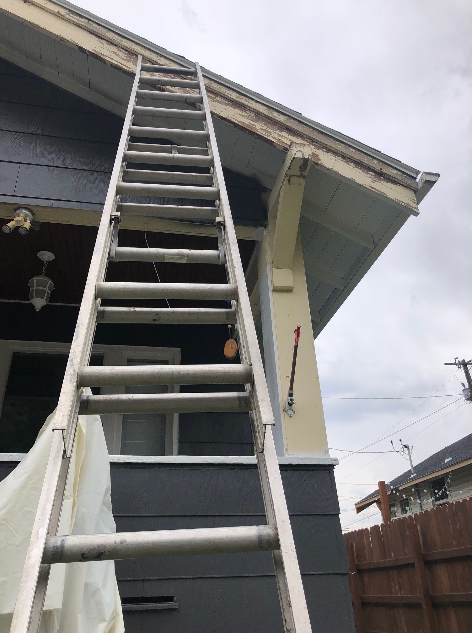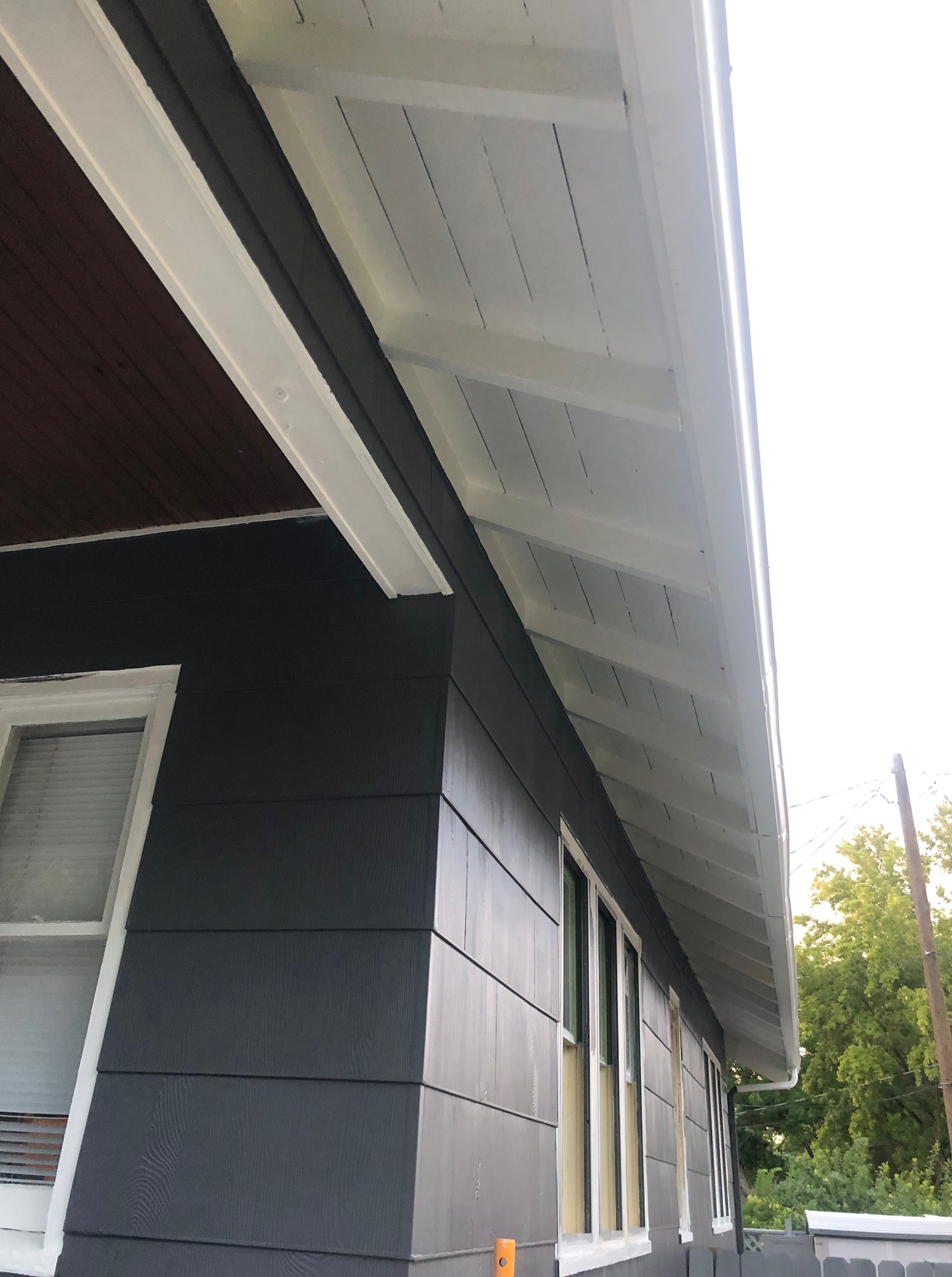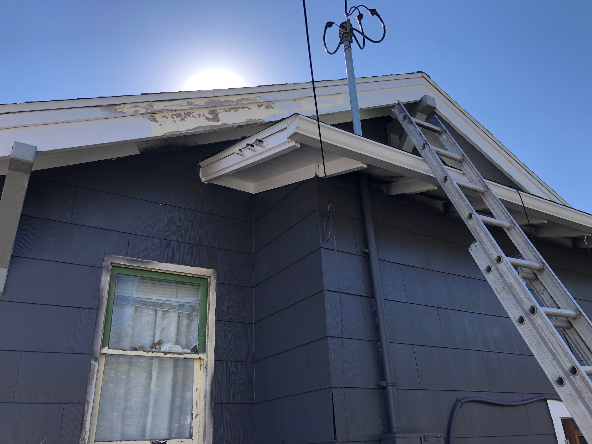 the eaves took about 20x the effort of the entire house. i spent most of september on a scaffolding, eating paint chips, sobbing and cussing, painting my hair and blurring straight lines over and over. first with the peppercorn and then with the trim color.
